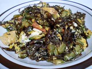 ゴーヤーの苦みがもずくを引き立ててくれて、