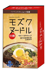 がんじゅう(健康、元気を意味する沖縄の方言)海麺は、ラーメンや麺類が好きな人にカロリーや化学調味料、保存料を心配しないで食べていただける安心安全な麺と、沖縄県産のもずくを美味しく味わっていただける商品です。